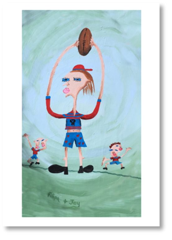From a painting in the colourful character series. Named because Andy likes to play rugby.